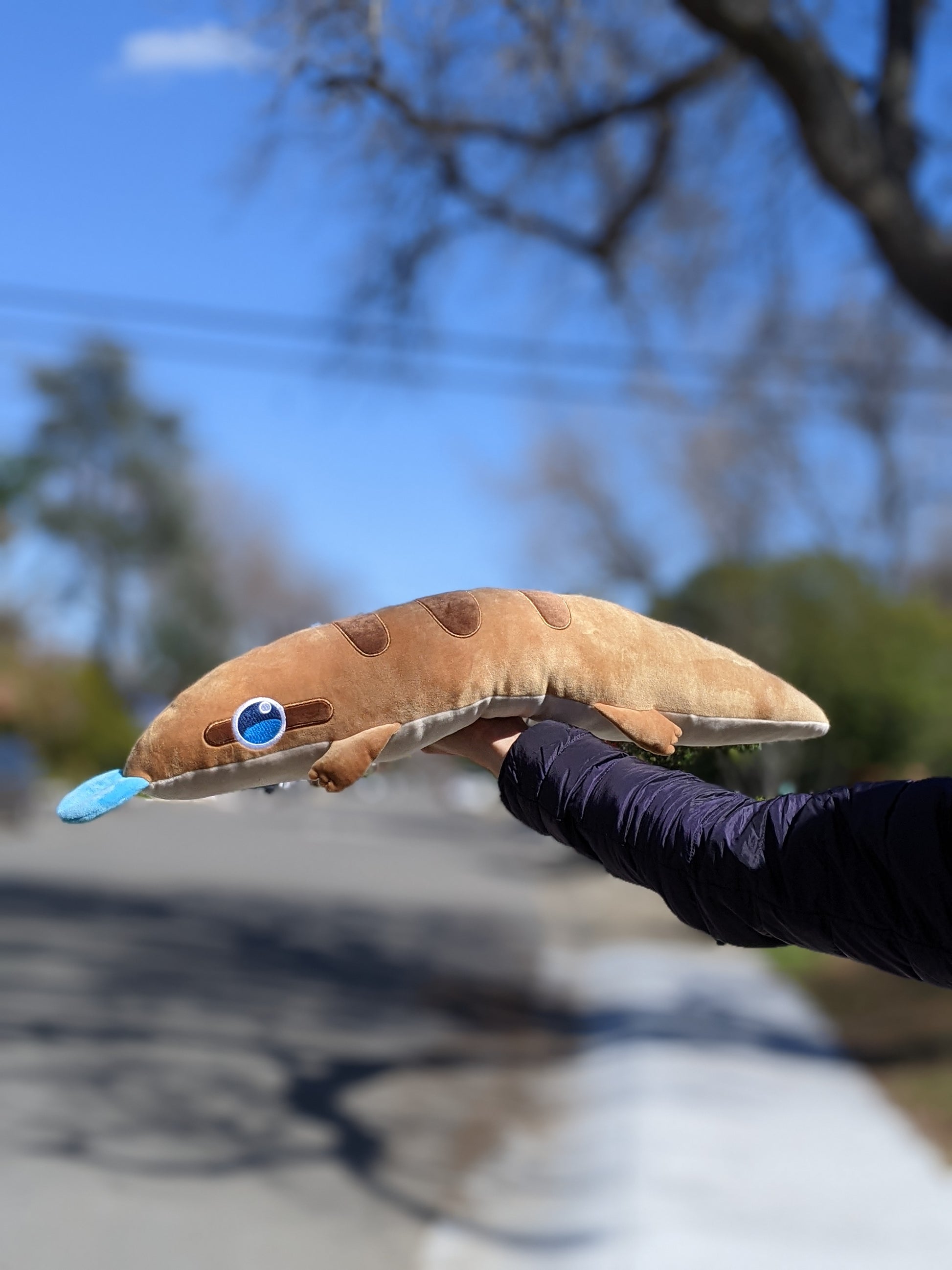 An adorable and high quality plush skink! Absolutely love it, it’s so big I can even use it as a body pillow of sorts. The material is nice and soft, the skink is nice and plush, and I like how the feet have little weighed beads at the end so they stay down and look like feet.